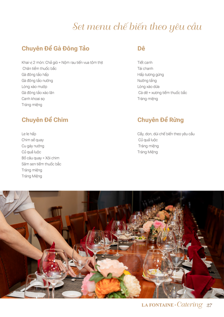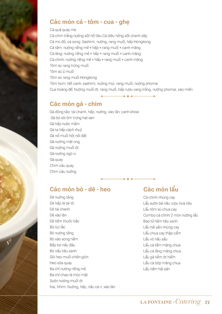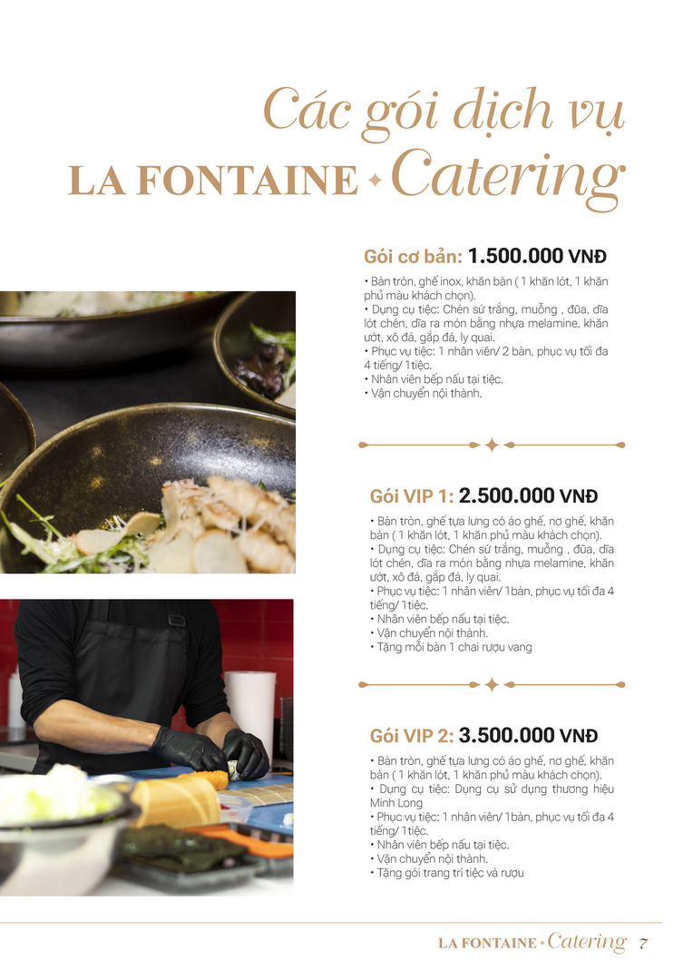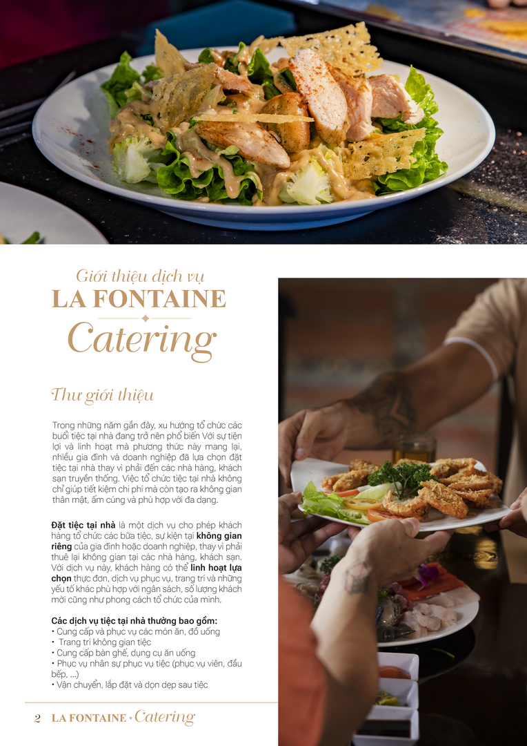 Nhà hàng La Fontaine chuyên cung cấp các loại hình dịch vụ đặt tiệc tại nhà bao gồm: