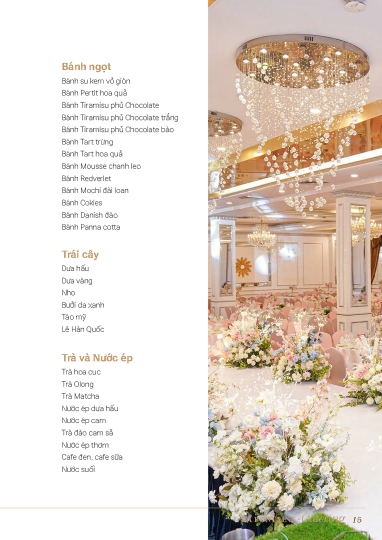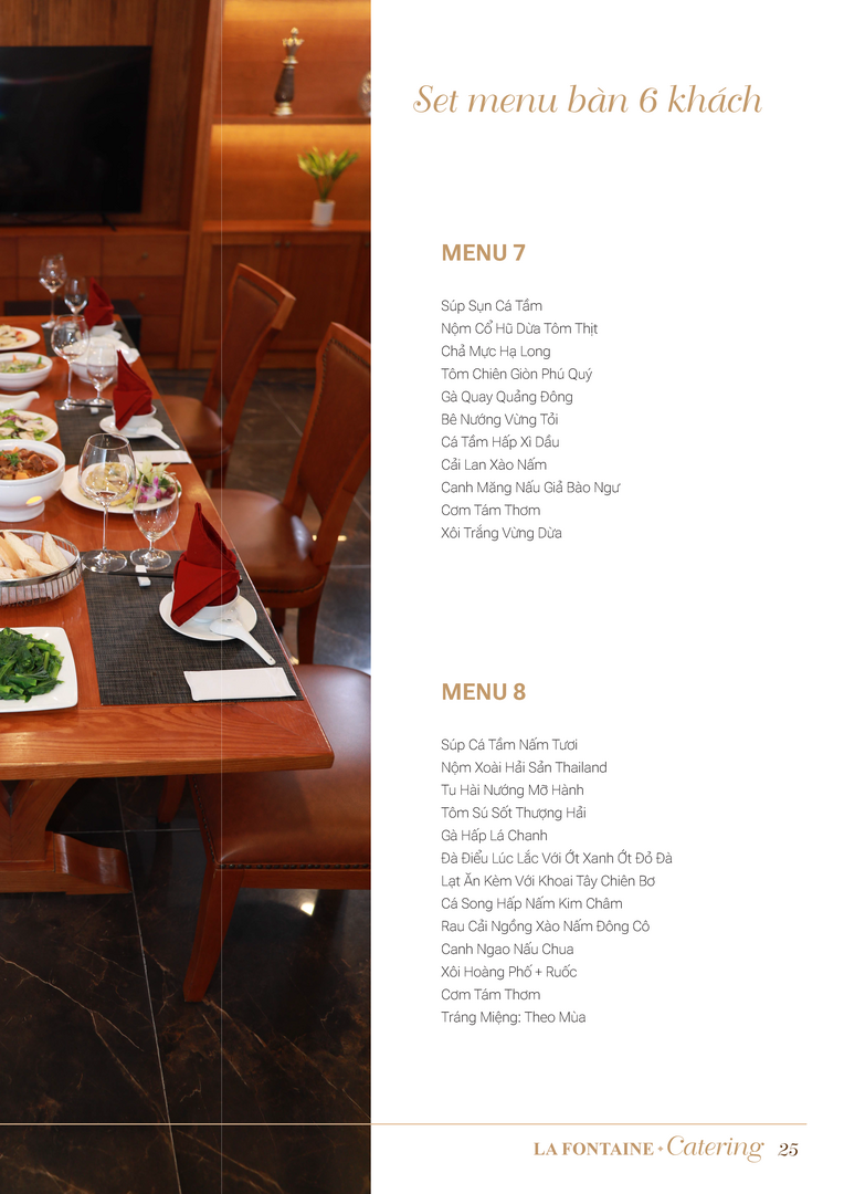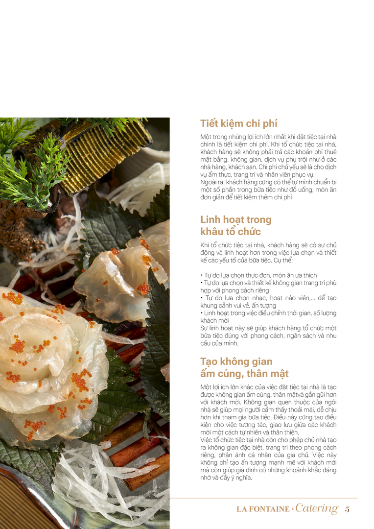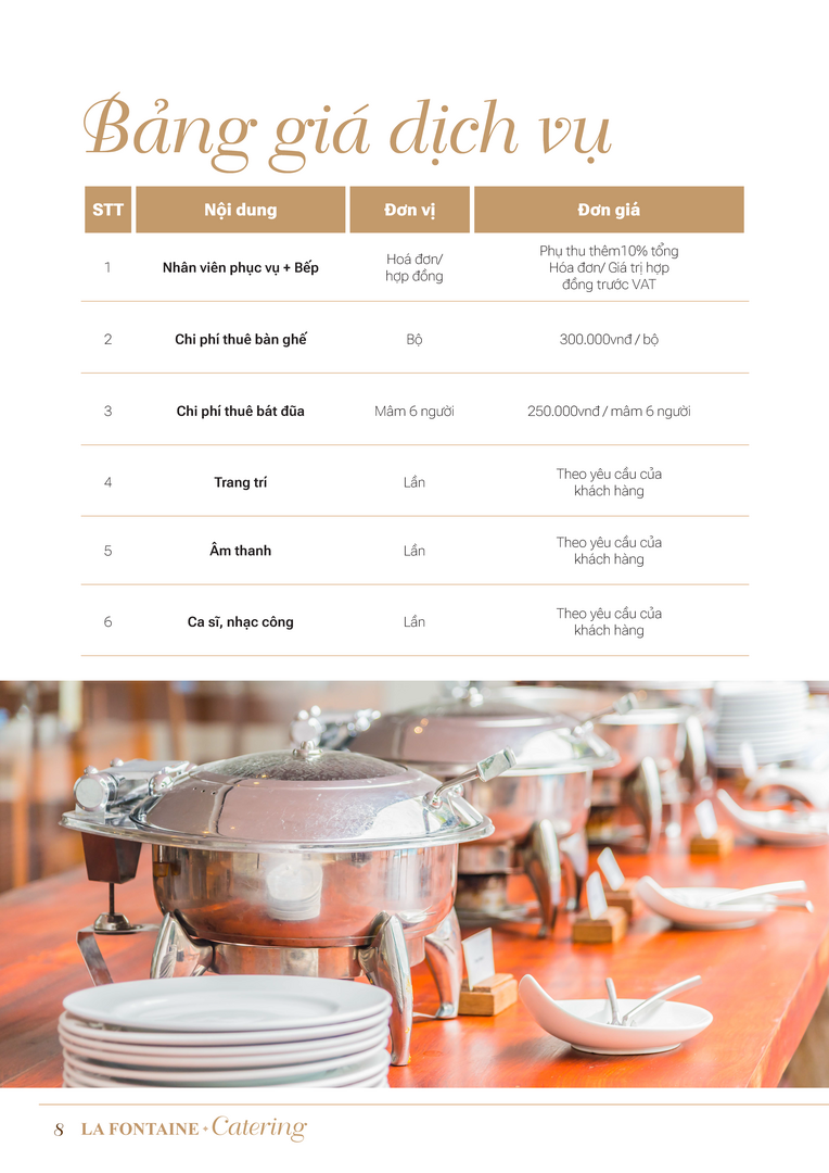 Nhà hàng La Fontaine chuyên cung cấp các loại hình dịch vụ đặt tiệc tại nhà bao gồm: