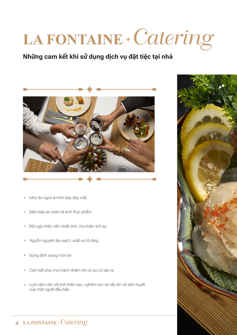 NHỮNG CAM KẾT KHI SỬ DỤNG DỊCH VỤ ĐẶT TIỆC TẠI NHÀ - TẠI NHÀ HÀNG LA FONTAINE